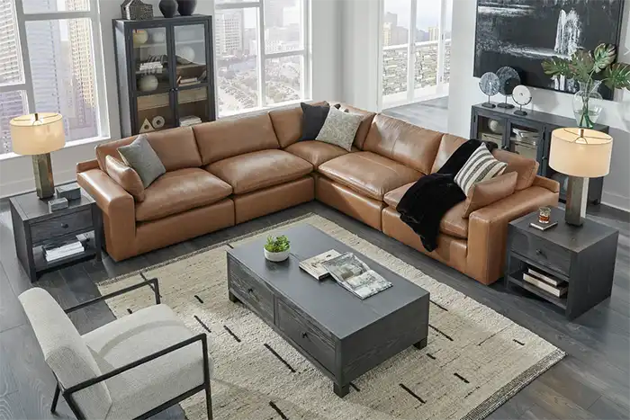 View full detailsEmilia 5-Piece Caramel SectionalWeight : 405 lbs. | Cube : 162 ftStyle: ContemporaryShowroom: Signature DesignDivision: Signature StationaryColor: ...