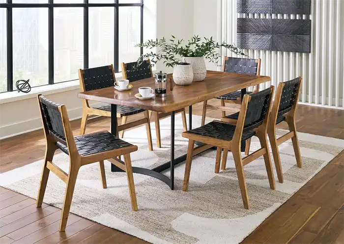 Tyler Creek Black/Gray Dining Room Set | D736Series Features: Unique two-tone finish with a combination of Oak and Acacia substrates combining a tr...