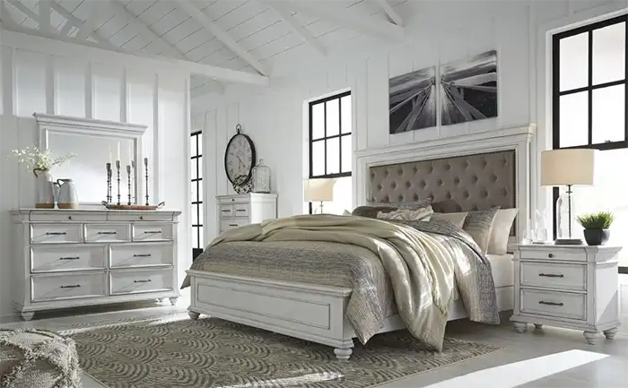 Kanwyn Whitewash Panel Bedroom Set | B777Made with veneers and select hardwood solids in a distressed whitewashed finish. Design features updated t...