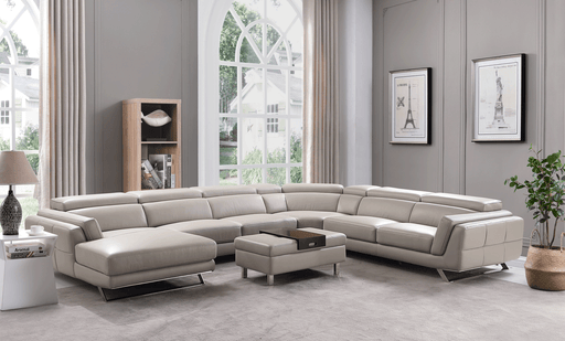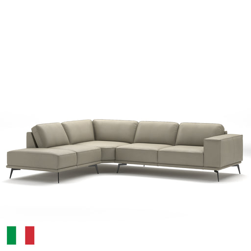 View full detailsThis stylish top grain leather L-shaped sectional with chaise is ideal for any living room or TV Room. Featuring top grain leather in popular light...