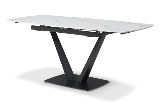 1- 109 Dining Table w/ Extension White Ceramic (Qty 1)Width: 47/71, Depth: 31, Height: 30, SKU: i38306Two x 12'' ExtensionsDescriptions:Sophisticat...
