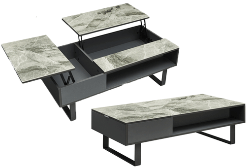 View full details1- 9087 Dining Table (Qty 1)Width: 83/123, Depth: 43, Height: 31, SKU: i37527Two 20'' ExtensionsDescriptions:Elegant extended ceramic top dark grey...
