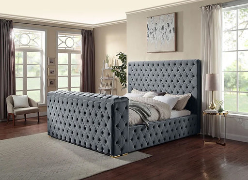 View full detailsCannes Queen Grey Platform TV BedDescription: -Available in 4 colors-Velvet squared bed with upholstered lid-Electronic Tv Storage pop up-Tv insert...
