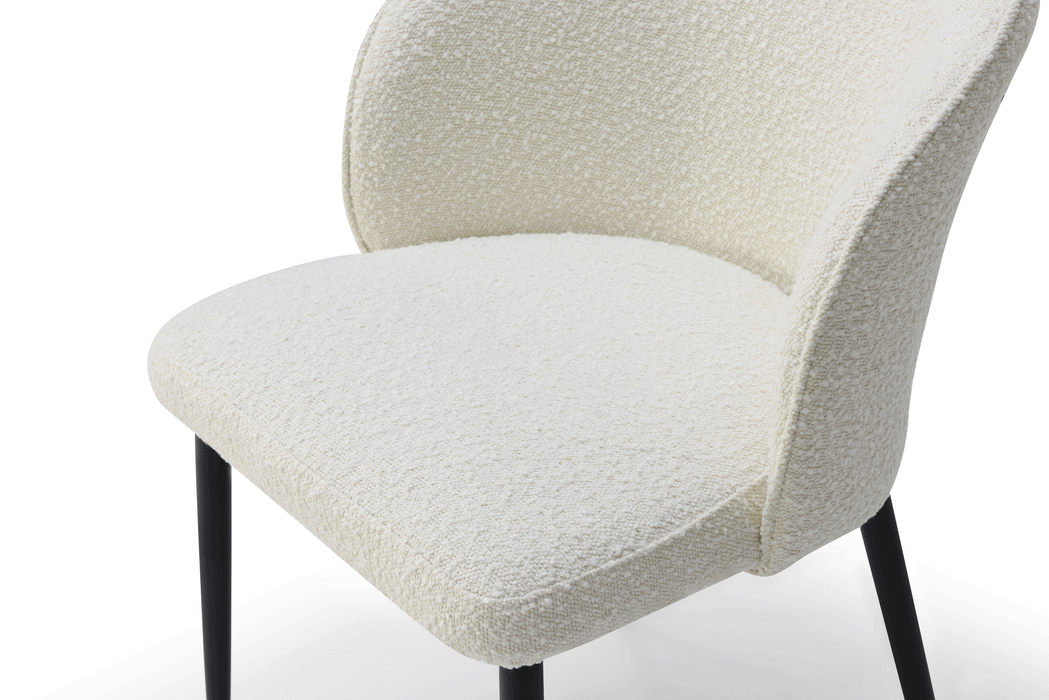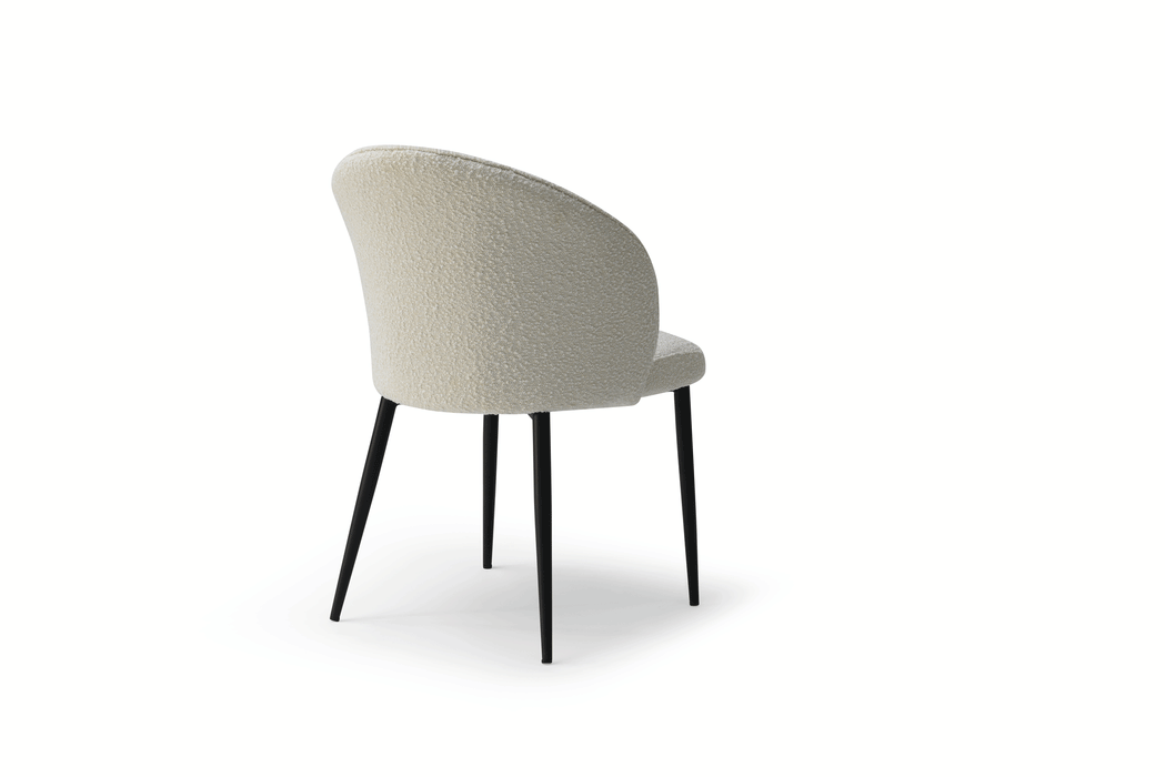 2107 Dining Chair, which features matching Black sanding painted legs, the overall dining set exudes a cohesive and luxurious look. The combination of the white marble tabletop, black sanding legs, and comfortable seating of the dining chairs creates a sophisticated and inviting atmosphere for dining and entertaining. Dining chairs: Fabric: Lamb Wool Fabric Legs: Black sanding powder coating