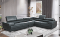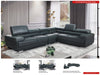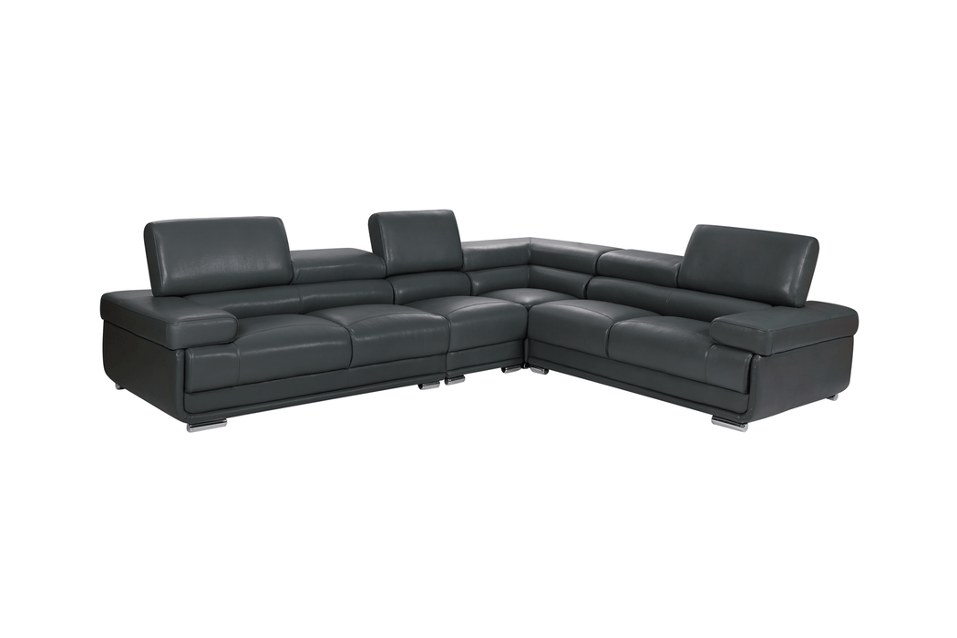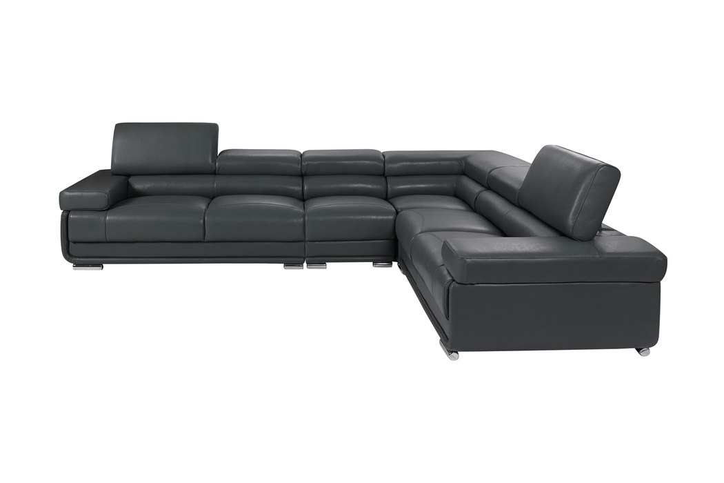 Stock leather color: #959 dark grey Modern design leather sectional with exchangeable configuration. You can make left or right side longer just by removing armless chair and inserting it to the other side or you can use it as an accent piece. 5 adjustable headrests Seat depth: 23" (59cm) Seat high: 17.3" (44cm) Type of seat: High density foam, with density 35kg/m³