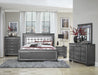 Glamour reigns in the design of the Allura Collection. Each piece is framing a decorative beveled mirror accent that enhances the illumination from the touch-engaged LED back-light of the headboard and mirror, as well as the under-light of the night stand. Alligator embossing and high polished crystal elevates hardware boldly accent the newly available gray finish - over mindy veneer - of the collection. The Allura Collection is also available ineither a Silver or Black finish. Providing additional glamour and functionality to your bedroom are the vanity, stool and decorative bench. The vanity features behind-the-mirror jewelry hooks, drawer storage, tri-fold mirror and a glass shelf that connects the drawer units. Both the bench and vanity stool feature crystal button tufting for an added hint of sparkle.