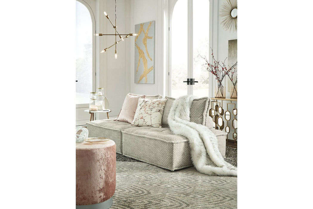 Be bold with a modern take on seating. This accent chair set has an armless design and carries a checkered taupe upholstery neutral enough to fit in any style while elevating it at the same time. Thanks to its modular design, making the transformation from sofa to chaise is practically effortless.
