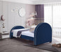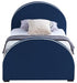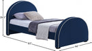 Get a good night's sleep with this Brody navy velvet twin bed. Crafted from a mixture of wood, velvet, and foam, this bed is as comfy as it is cozy. Its soft navy velvet bed frame features cream velvet piping, giving it an appearance reminiscent of gingerbread. Dark espresso wood legs complement the navy-and-cream frame while providing sturdy support. Its contemporary design is perfect for any modern bedroom space, and its velvety texture ensures you get plenty of Z's.