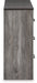 Alluring smoky gray hues create an ambiance that just feels right. This 6-drawer dresser has a charming wood-like appeal enriched by a two-tone, textured look. Light neutral shades contrasted by a dark charcoal finish bring a refined yet relaxed feel to contemporary decor and a sense of serenity to your space.