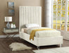 Elegant and eye-catching, the stunning Candace Bed from Meridian Furniture is the perfect addition to any bedroom. Rich velvet covers the deep Channel tufted design. Strength and beauty is guaranteed with a solid wood frame and acrylic legs.