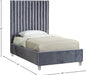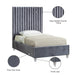 Elegant and eye-catching, the stunning Candace Bed from Meridian Furniture is the perfect addition to any bedroom. Rich velvet covers the deep Channel tufted design. Strength and beauty is guaranteed with a solid wood frame and acrylic legs.