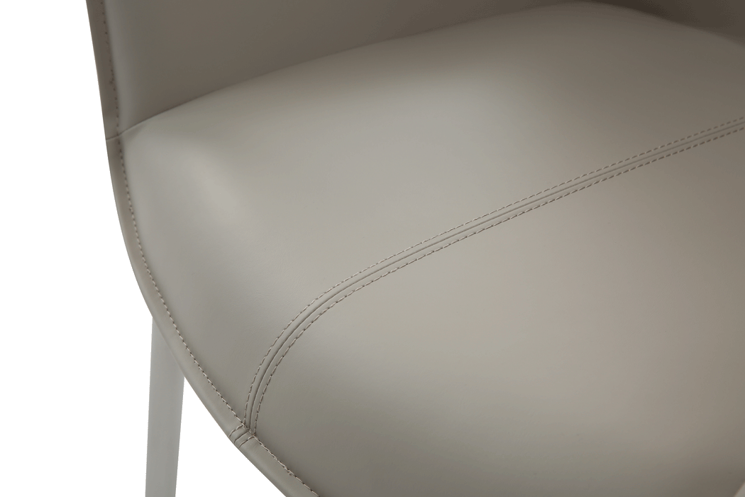 Stunning dining table adorned with a ceramic surface that perfectly emulates the elegant beauty of marble, bringing a touch of refined sophistication to your dining space. Table Top & ext : 12mm ceramic (GREY) Base: Sanded dark grey (SWH2476) powder coated metal Two 16'' Extensions Swivel Chairs: PU(grey SMK-53) Legs: stainless steel Color light grey