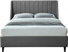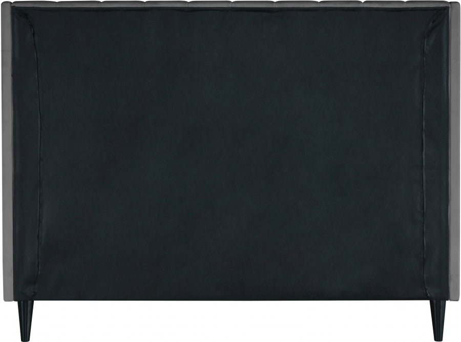 Snuggle up to a pet or other loved one in this richly upholstered Eva grey velvet full size bed for the ultimate in rest and relaxation. The wing back headboard has cushioned vertical deep channel tufting, and both the side rails and footboard are upholstered too for your comfort. Tapered black wood legs match the upholstery and support this contemporary bed, elevating it sufficiently that you can store items underneath.