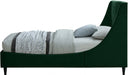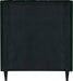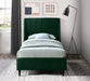 Snuggle up to a pet or other loved one in this richly upholstered Eva green velvet twin size bed for the ultimate in rest and relaxation. The wing back headboard has cushioned vertical deep channel tufting, and both the side rails and footboard are upholstered too for your comfort. Tapered black wood legs match the upholstery and support this contemporary bed, elevating it sufficiently that you can store items underneath.