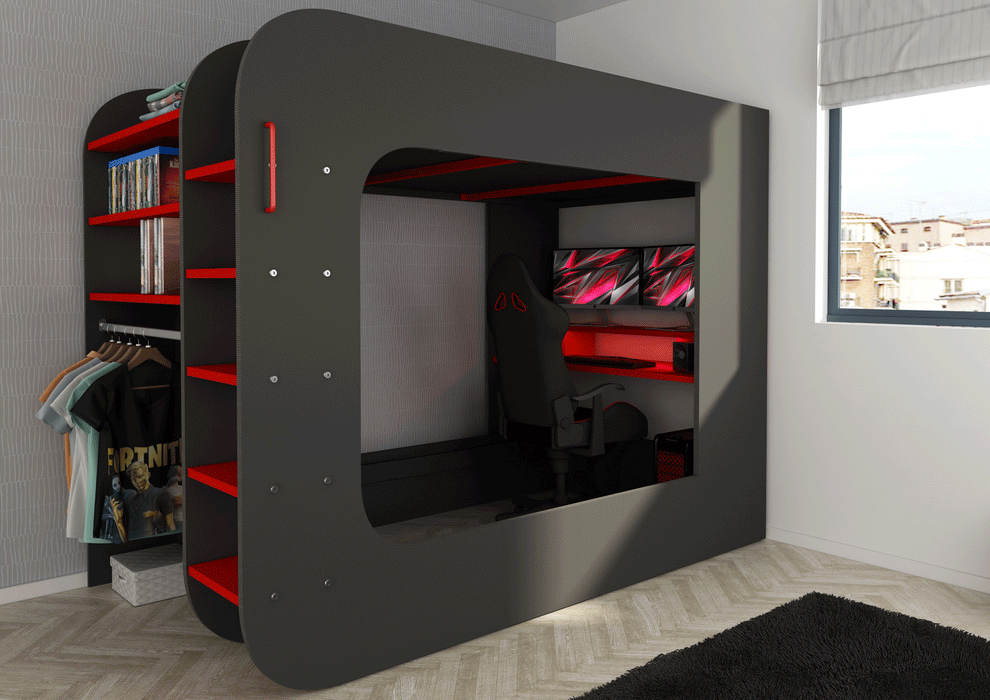 Level up your child's bedroom game with our Gamer Bed 120x200 Red. Perfect for young gamers, this bed will make them feel like they're in the middle of the action. Available in a sleek and stylish matte finish. Upgrade your kid's bedroom today! * Gaming chair not included*