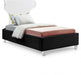 There's nothing scary about the Ghost black velvet twin size bed, with its plush cushioned and upholstered side rails and footboard. A curved transparent acrylic headboard allows you to situate it in front of a window without blocking the view, and matching acrylic legs offer a beautiful contemporary appearance. This bed has a complete set of slats included for your convenience, so you won't need to purchase a box spring.