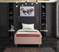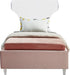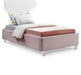 There's nothing scary about the Ghost pink velvet twin size bed, with its plush cushioned and upholstered side rails and footboard. A curved transparent acrylic headboard allows you to situate it in front of a window without blocking the view, and matching acrylic legs offer a beautiful contemporary appearance. This bed has a complete set of slats included for your convenience, so you won't need to purchase a box spring.