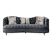 This classic nailhead camel back sofa is an excellent choice for adding style and elegance to any living room. Crafted from wood frames, this stylish design has a modern, sleek look with recessed arms and wooden round tape­red legs. Velvet upholstered furniture makes any room look glamorous, but when you add plush cushioning and elegant detailing, the result is even better. This furniture comes with matching throw pillows, provides you maximum comfort, gives an even more upscale look. Combine this furniture with a loveseat and a chair.