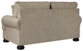 This sumptuously styled loveseat proves that a richly traditional look doesn’t have to break the bank. Flared effect gives the classic roll arms a relaxed feel, while the choice of a plush chenille upholstery in oatmeal is earthy elegance at its best. Distinctively turned bun feet in a dark finish add to the loveseat's substantial presence.