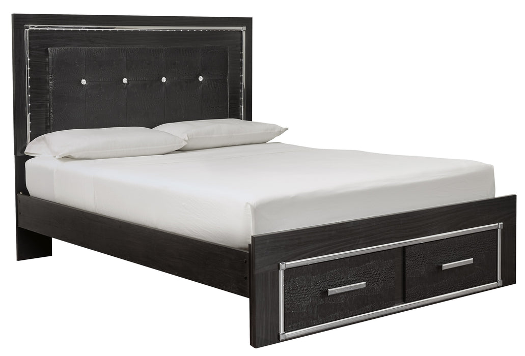 Kaydell Black LED Queen Footboard Storage Platform Bed