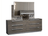 MADE IN ITALY COMING SOON TO STOCK A new bedroom in our exclusive Venetian Grey finish. The light and dark grey shades of the pattern create a matching elegant contrast with the trapezium shaped handles in brushed aluminum finish.