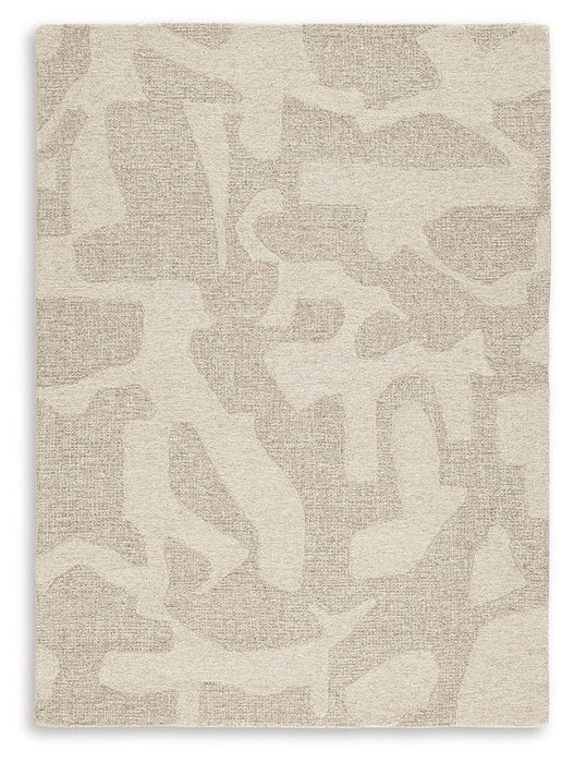 Add an abstract element to your floors. This accent rug effortlessly combines natural linen and taupe hues to create a contemporary aesthetic. Natural wool fibers form a decorative floor covering that complements your luxurious and laid-back lifestyle.