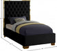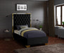 Make the Lana black velvet bed part of your dream bedroom setup. This bed has all of the bells and whistles you want, including a super tall headboard that stands nearly five-feet tall. The bed is covered in black velvet fabric for a luxe look, and it's deeply tufted for added luxuriousness. The headboard is soft and welcoming against your back and head as you read or watch TV in bed, and the bed rests on gold legs for dependable sturdiness and durability. Use it without a box spring or foundation, since the slats are included.