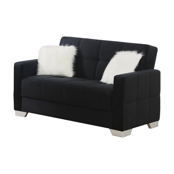 Ontario 65 in. Convertible Sleeper Loveseat in Black with Storage