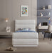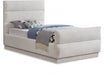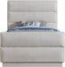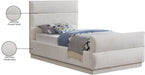 Embrace the essence of cozy sophistication with the Paxton Chenille Fabric Bed, a haven designed to elevate your sleep experience and enhance your bedroom's aesthetics. The bed is adorned in a luxurious rich cream chenille fabric, its soft texture inviting you to sink into its warmth. The subtle sheen of the chenille adds a touch of elegance, creating a timeless look that complements various decors. The headboard features a classic horizontal channel tufted design, adding visual interest and dimension to the bed. This sophisticated detail exudes a touch of vintage charm, making the Paxton a perfect fit for both traditional and contemporary spaces.