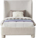 Breathe new life into your bedroom decor with the Penny Boucle Fabric Twin Bed. This stunning bed is upholstered in a luxurious cream boucle textured fabric, adding a touch of elegance to your space. The curved headboard provides a comfortable and supportive backrest while adding a stylish focal point to your bedroom decor. Upgrade your sleeping experience with this fully upholstered bed and indulge in a peaceful night's sleep.