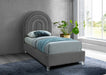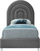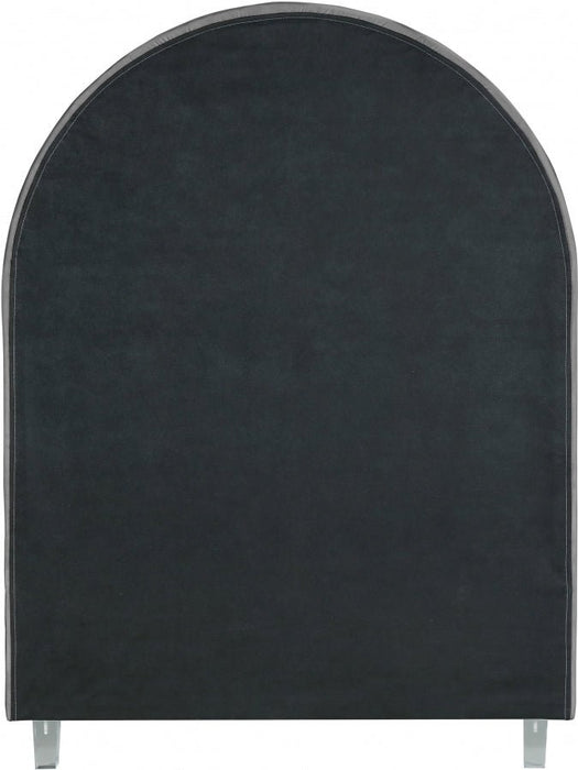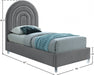 There's a lot to fall in love with when it comes to this Rainbow twin-size velvet bed. This stunning bed is fit for an MVP with its rich grey velvet upholstery covering the headboard, side rails and foot board. This bed rests on thick white acrylic legs for added support and features deep channeled tufting on the headboard for a textural look that's dramatic and elegant all at once.