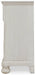 Elegant, timeless furnishings take your bedroom to the next level. Nothing does that better than this dresser. The antiqued white finish with a wonderful grain texture oozes sophistication, while dark bronze-tone knobs add an ornate touch. Felt bottoms in the upper drawers round out this tasteful piece.