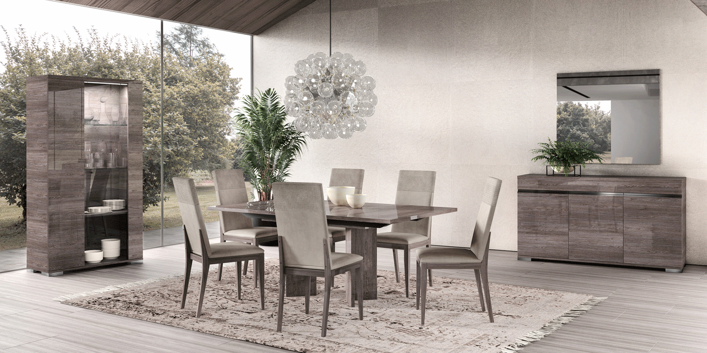 MADE IN ITALY COMING SOON TO STOCK... Welcome to the enchanting Viola Dining Room, a masterpiece of design and craftsmanship brought to you all the way from Status, Italy. Viola boasts a captivating Purple Elm finish that exudes elegance and sophistication, while its Burnished Chrome handles add a touch of refined allure, making it the epitome of luxurious dining.
